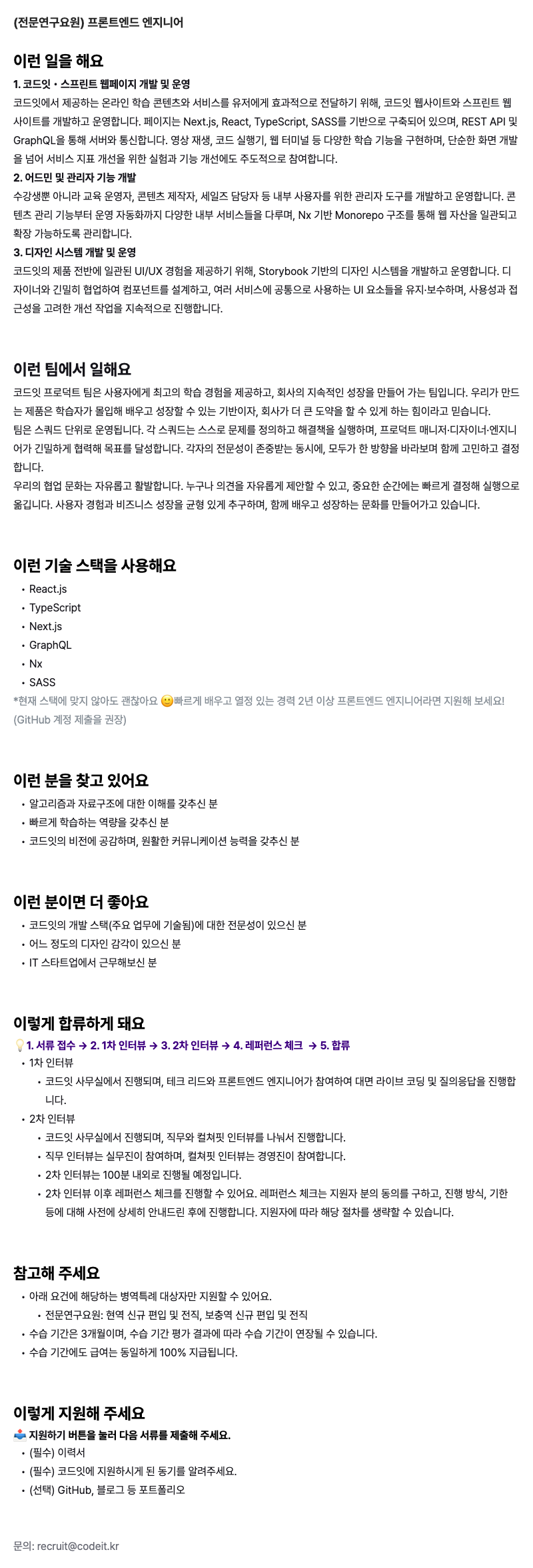 - 채용공고 링크: https://recruit.codeit.com/ko/o/191719