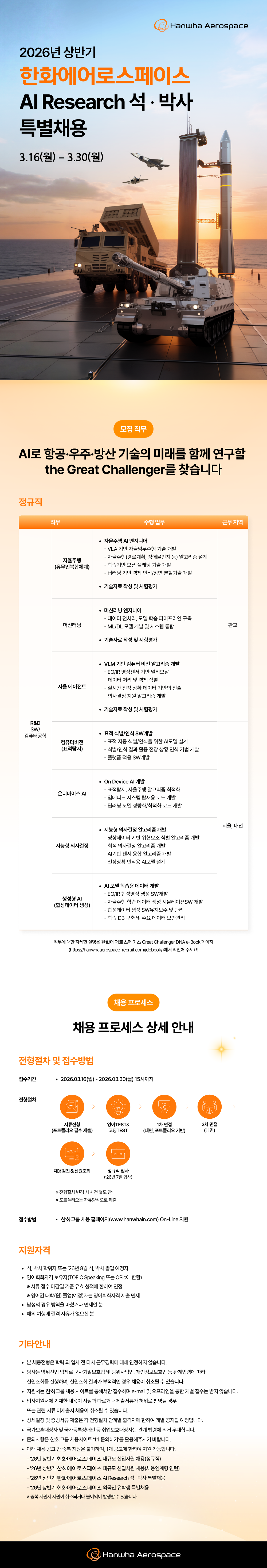 [한화에어로스페이스] 2026 AI Research 석·박사 특별채용(~3/30)