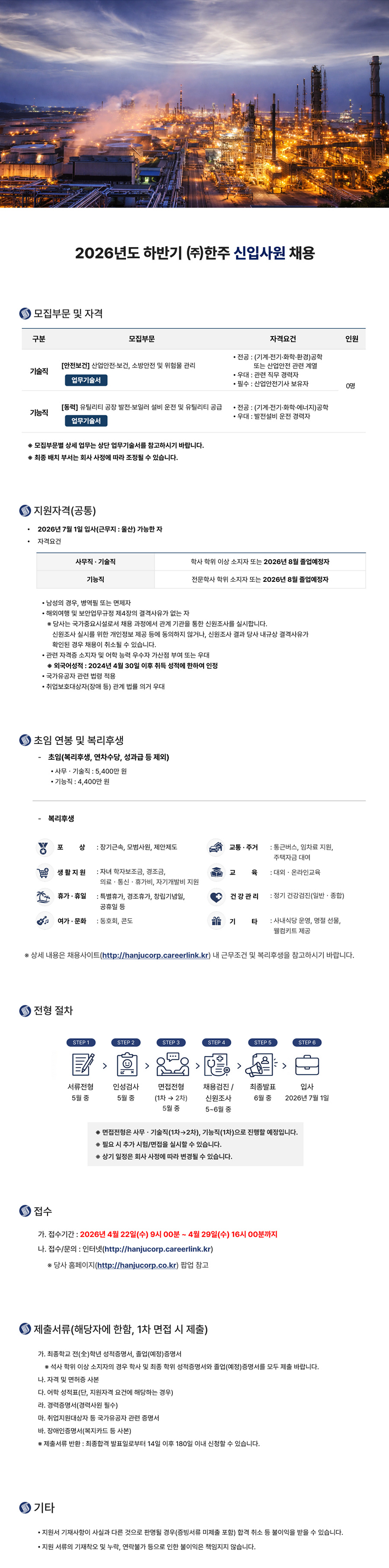 * 세부 내용은 한주 채용 홈페이지 확인