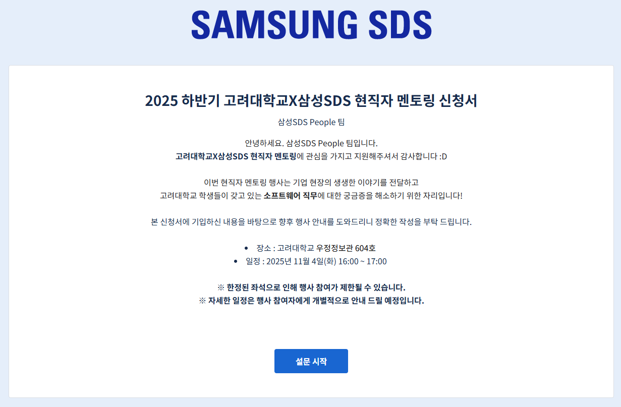 <2025 하반기 고려대학교 X 삼성 SDS 현직자 멘토링(SW 직무) 안내>