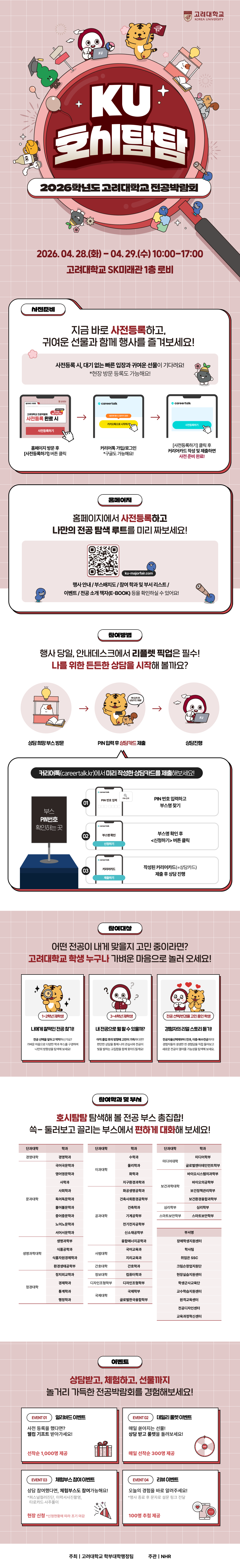 여러분들의 전공 관련 고민을 해결해줄 고려대학교 전공박람회가 개최됩니다.