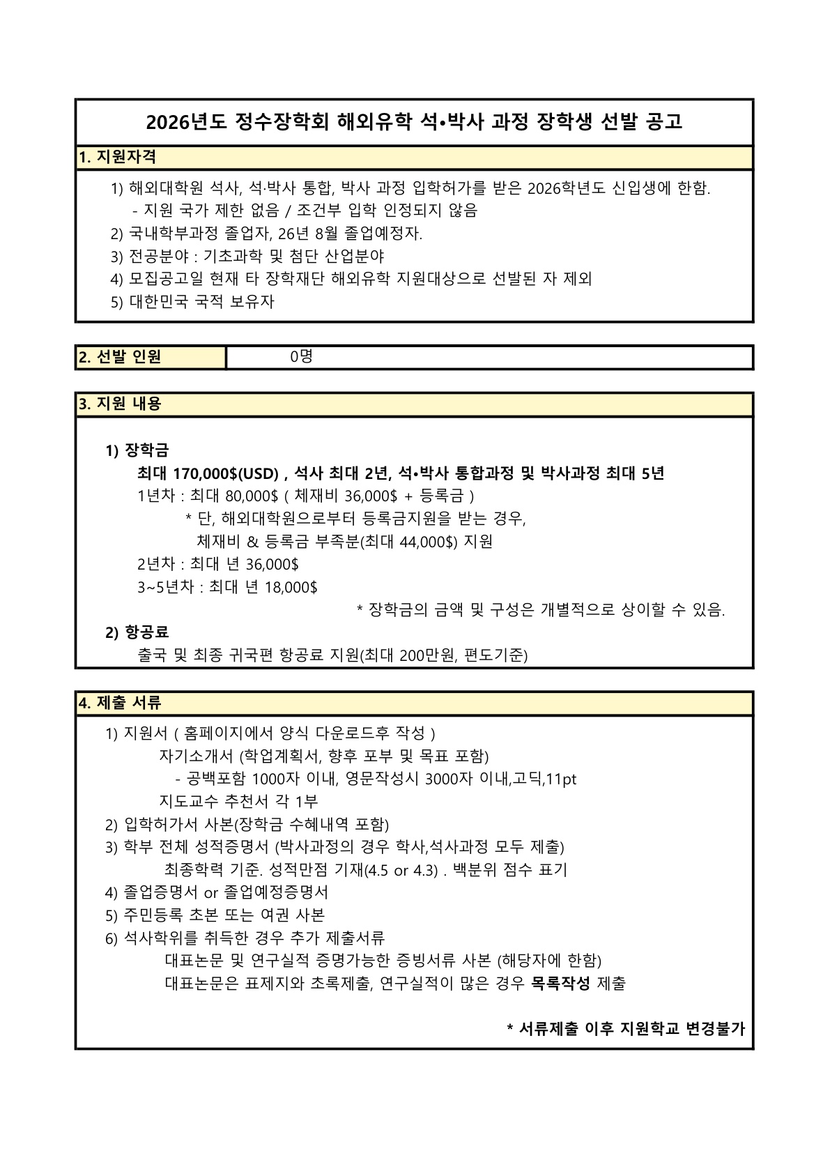 | 제목 | [정수장학회] 2026년도 정수장학회 해외유학 석박사 과정 장학생 선발 모집 |